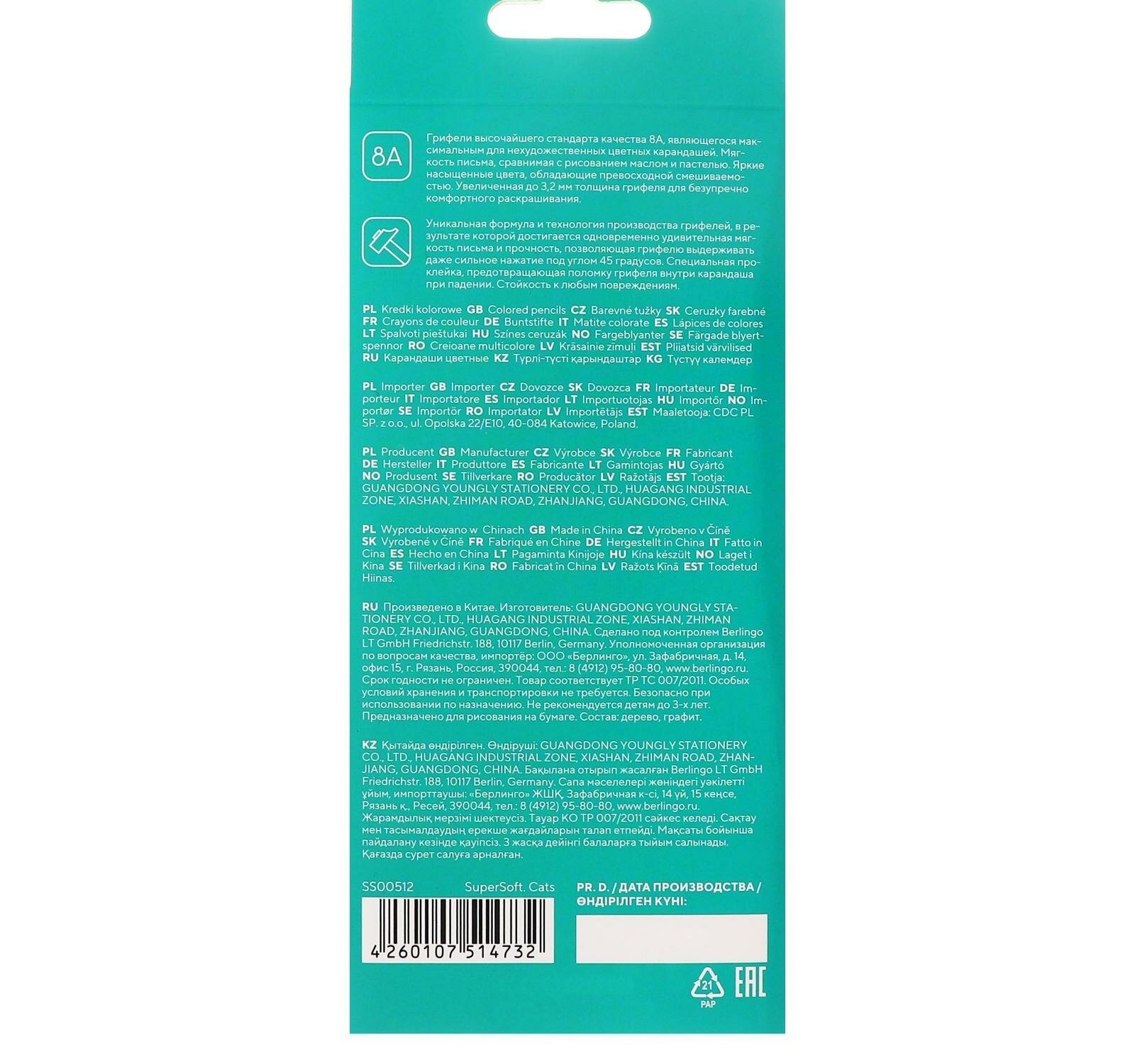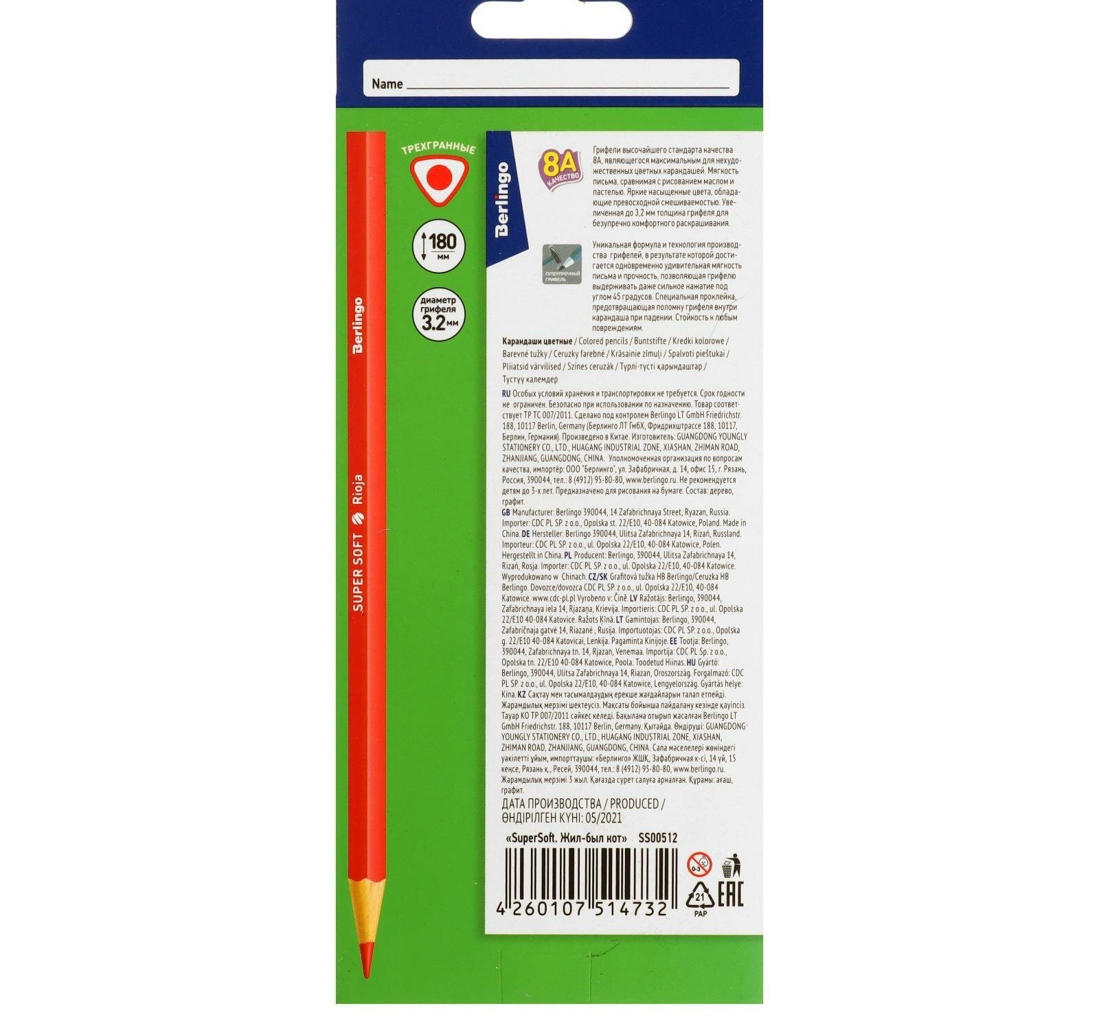 Карандаши цветные Berlingo SuperSoft Жил был кот 12цв SS00512