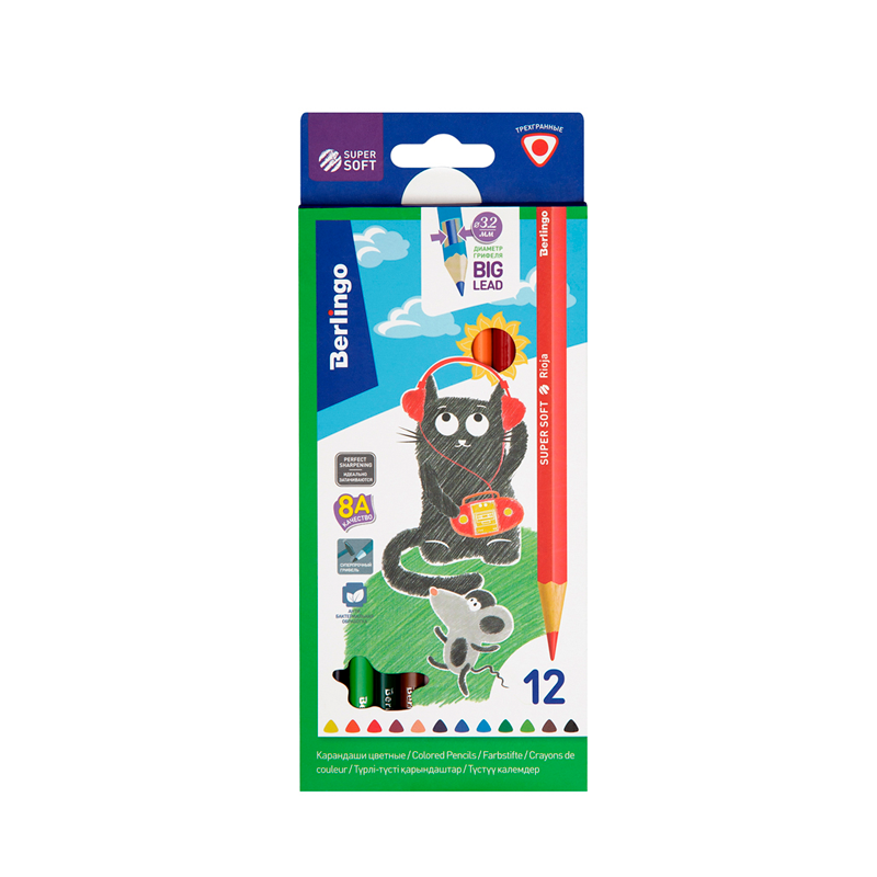 Карандаши 12цв Berlingo "SuperSoft. Жил-был кот", трехгран, карт/уп, европодвес 297236 9404332