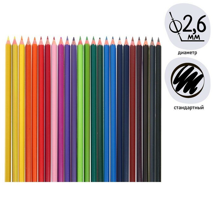 Карандаши 24 цвета эконом, заточенные, шестигранные, пластиковые, картонная упаковка, европодвес 1 упак.
