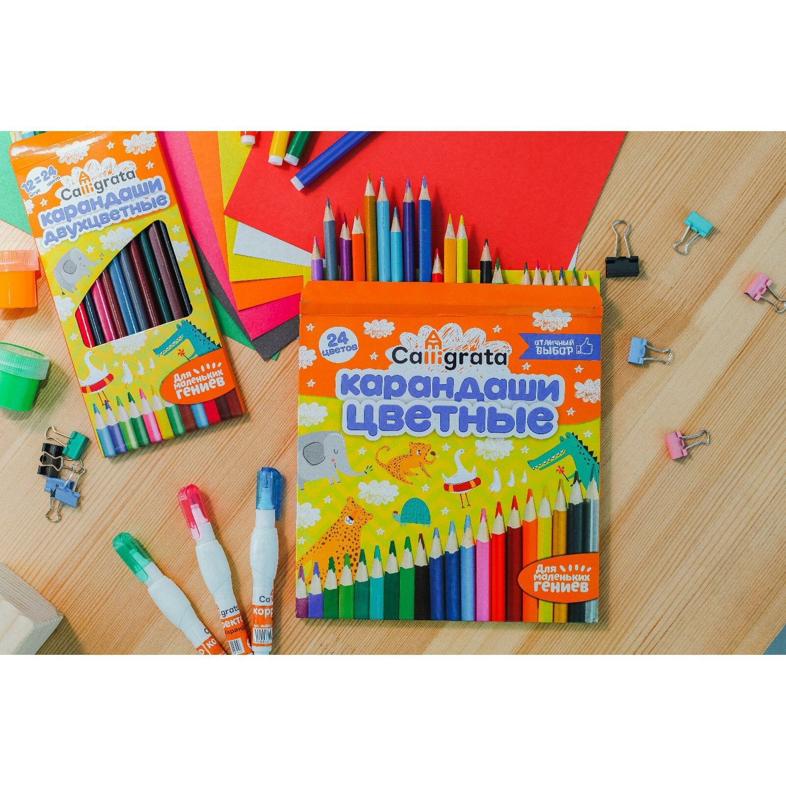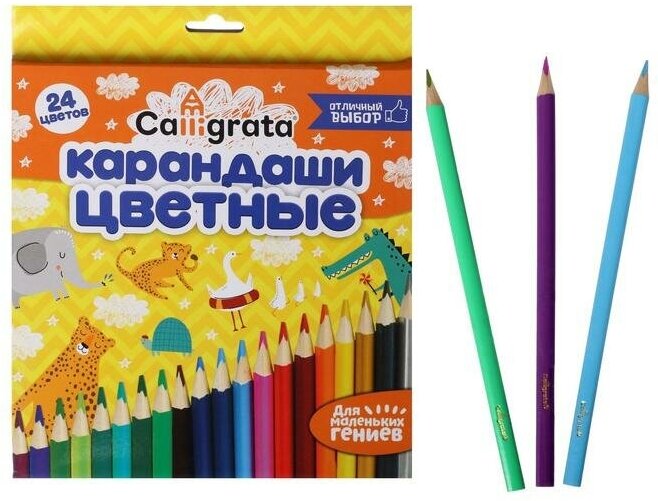 Calligrata Карандаши 24 цвета, в картонной коробке, деревянные, треугольные интересное: