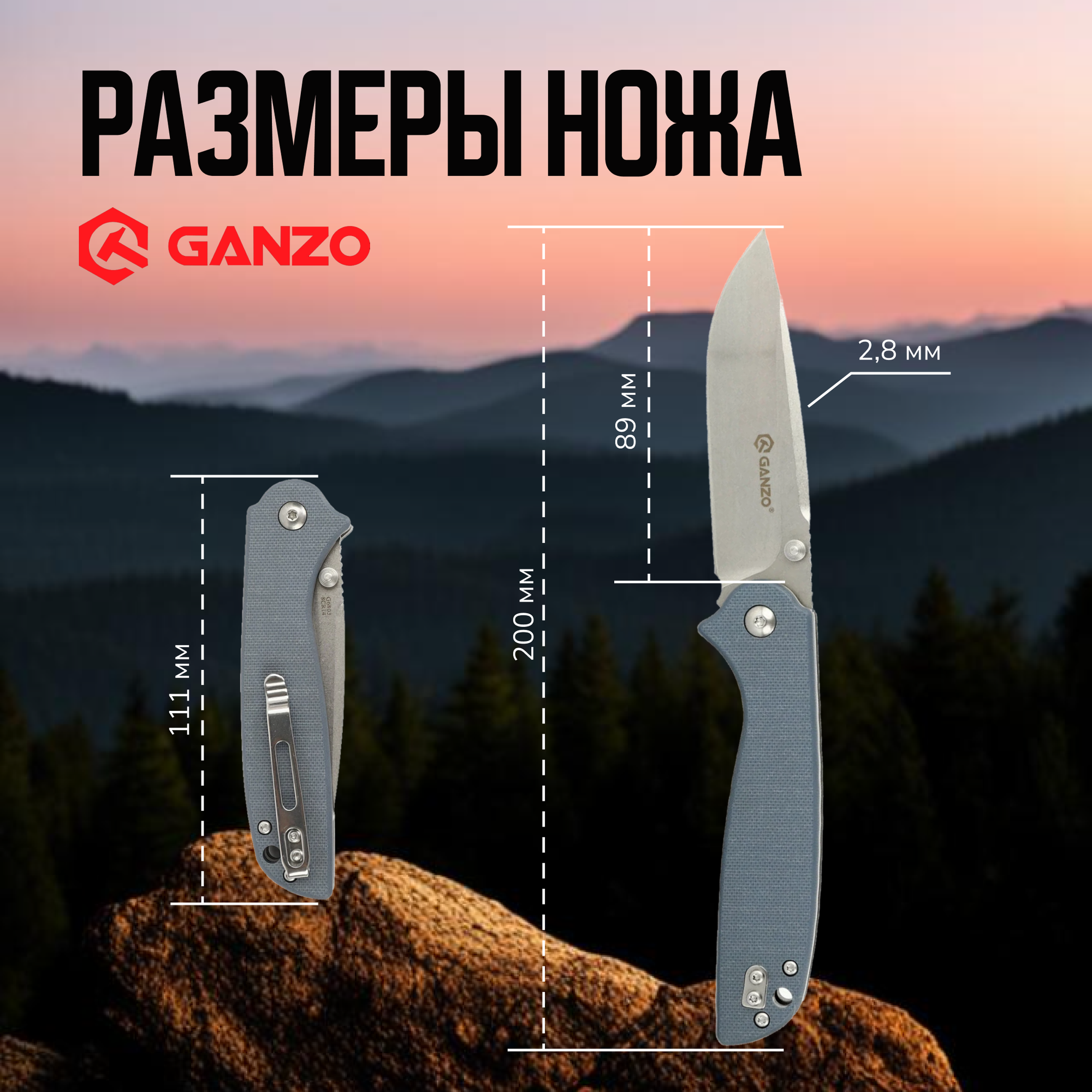 Нож Ganzo G6803-bk - длина лезвия 89mm .