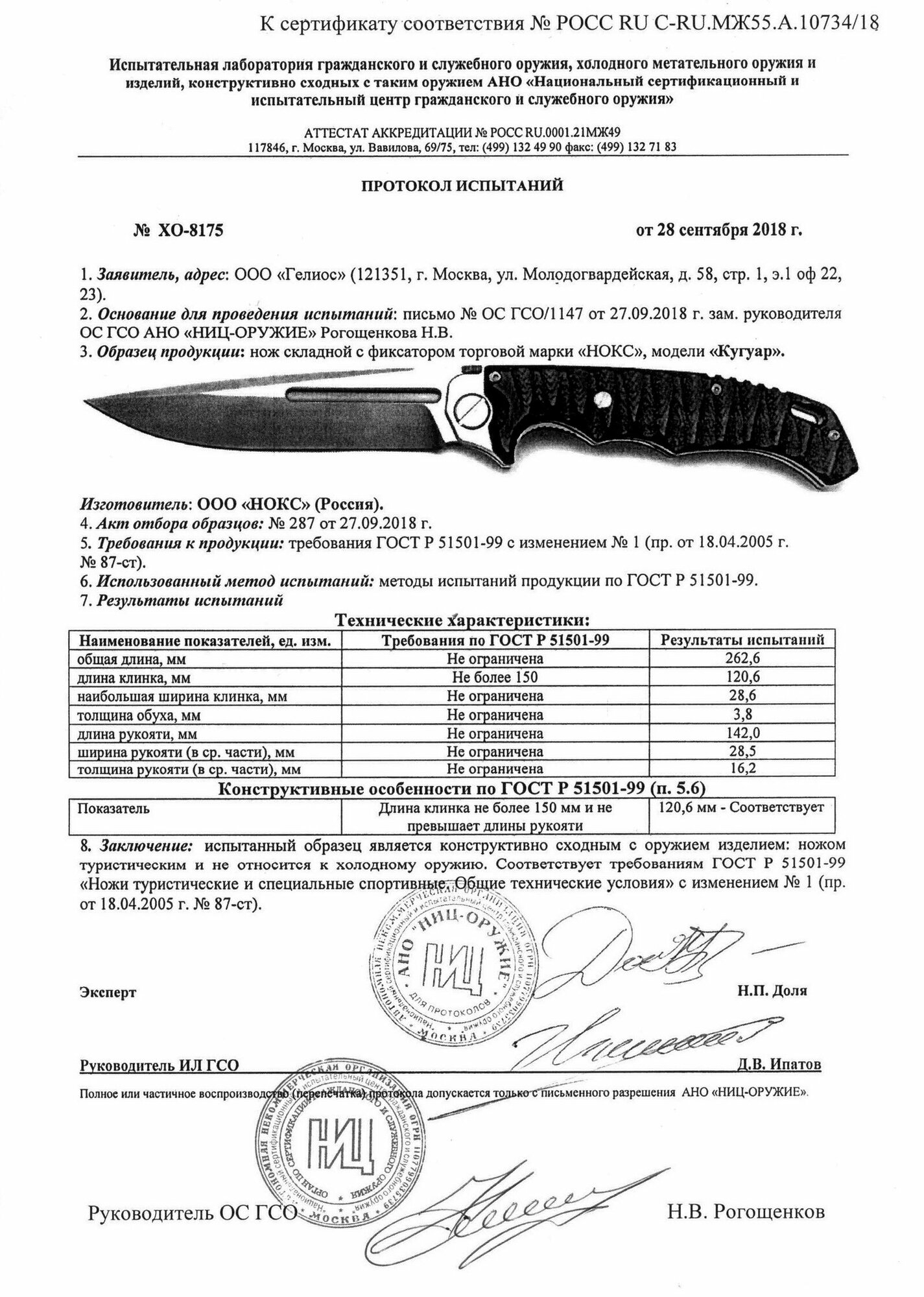 | Характеристики ножа | |