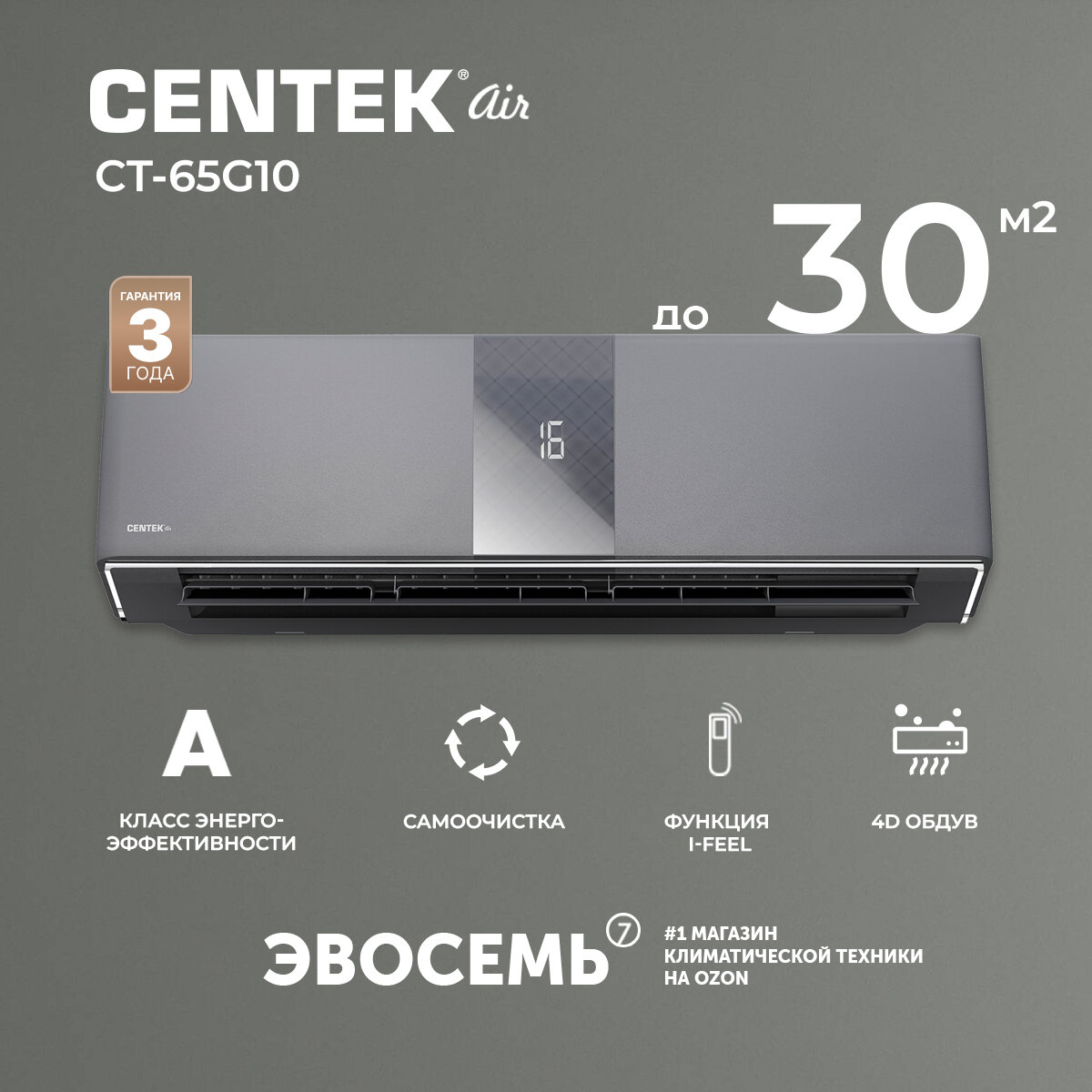 Кондиционер Centek CT-65G10 Carbon Gray