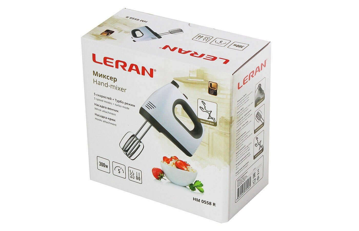 Миксер Leran "HM 0558", ручной, пластик, 300Вт, турборежим, 2 насадки