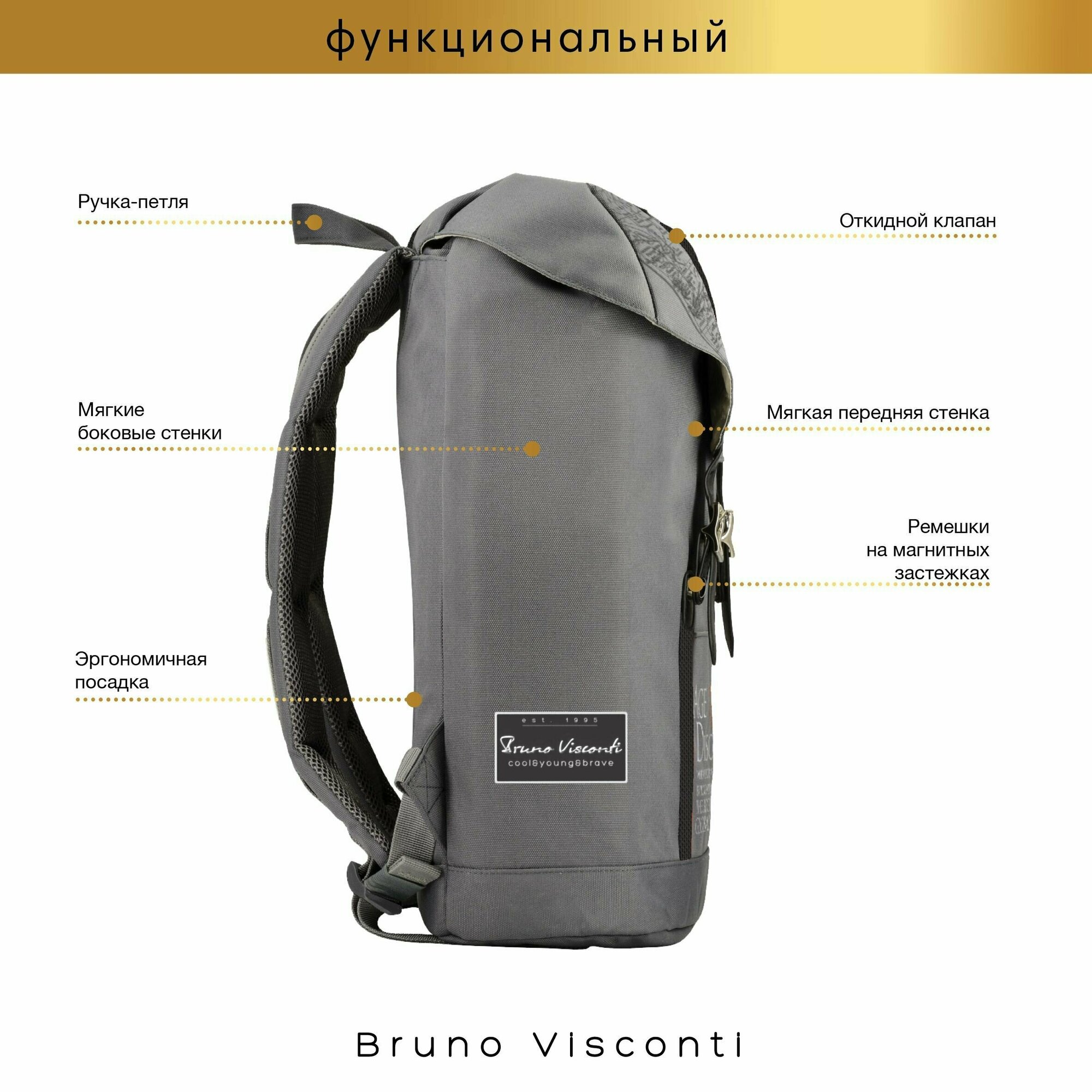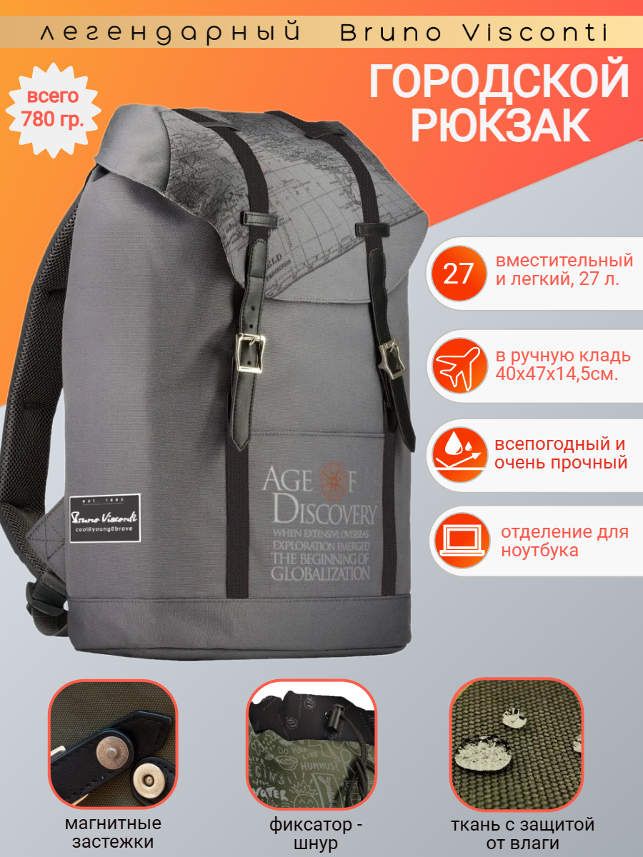 Рюкзак BrunoVisconti, городской, серый , «эпоха открытий», Арт. 12-011-015/05