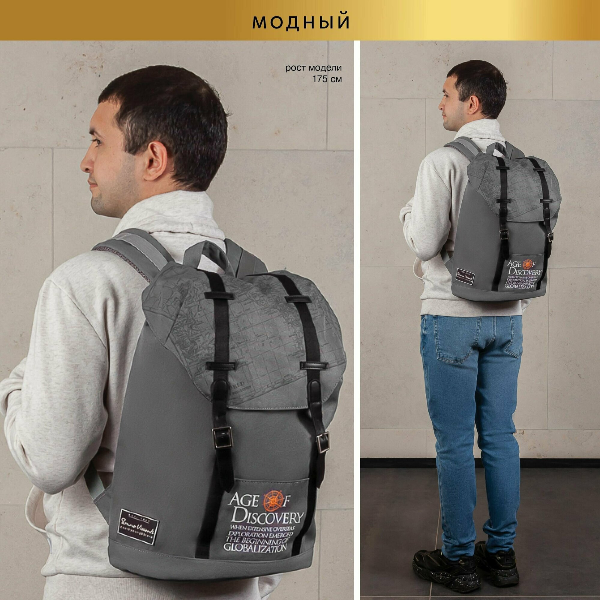 Рюкзак городской серый "эпоха открытий"