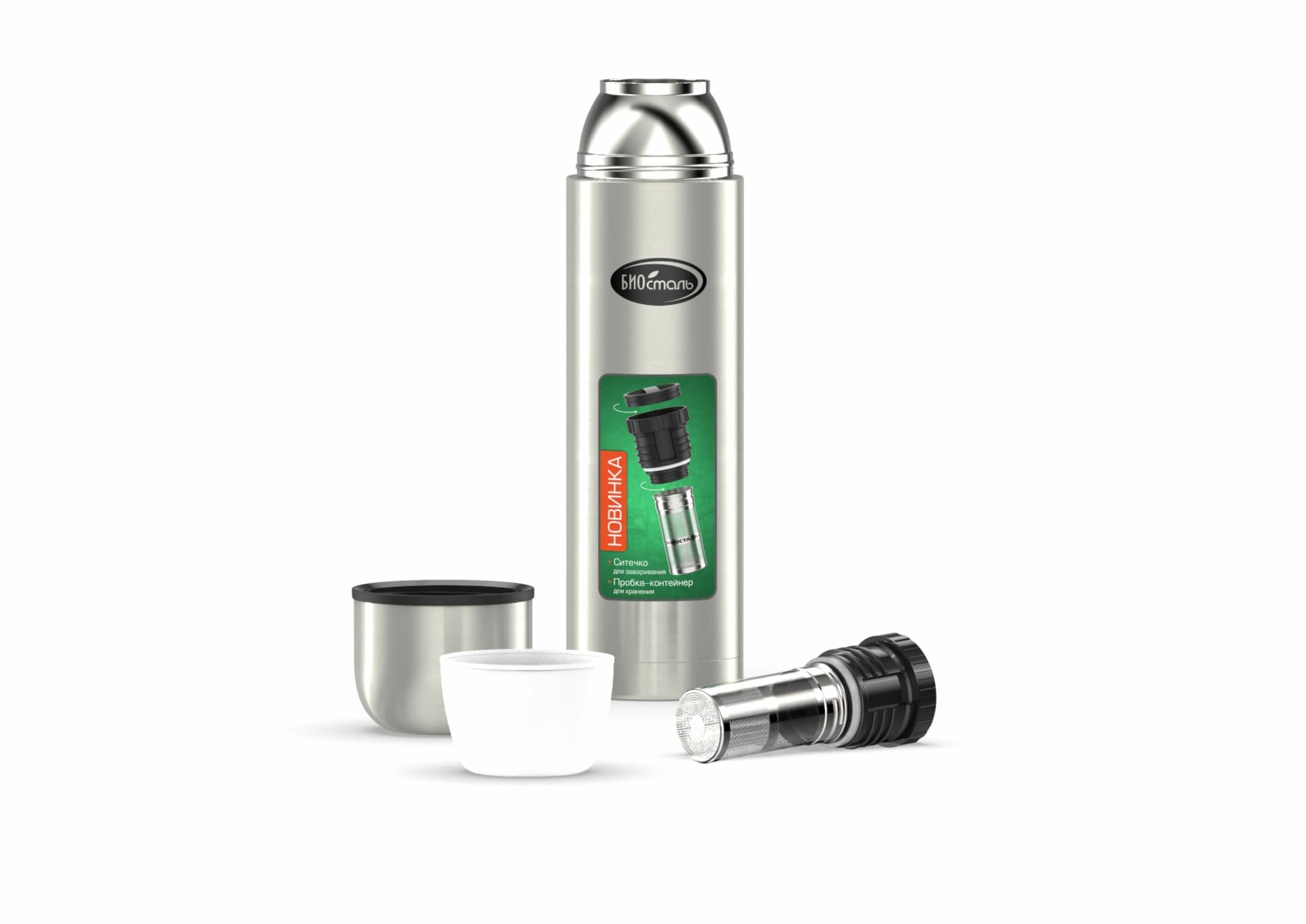 Термос Biostal Охота (1,2 литра), 2 чашки, с ситечком, стальной интересное: