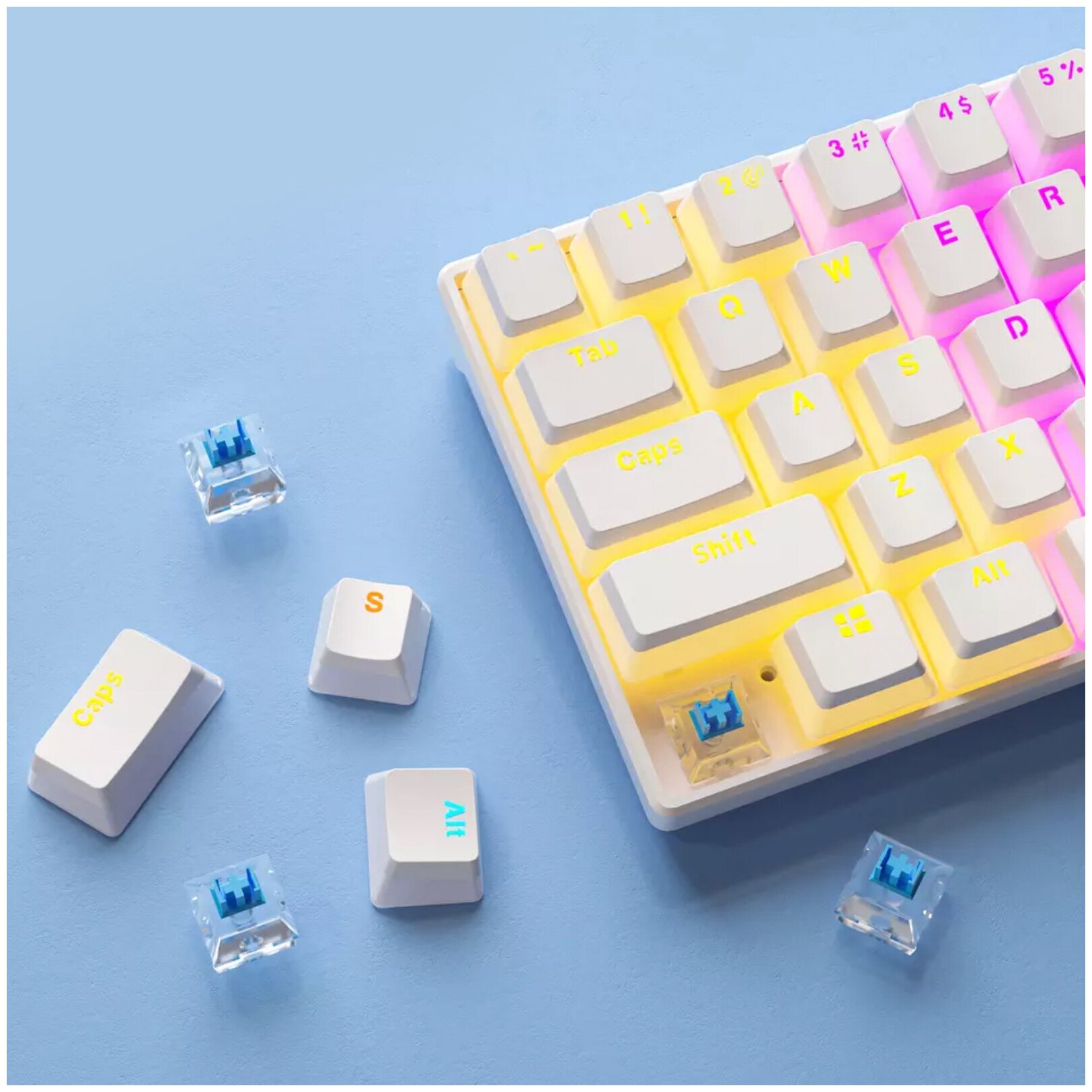 Клавиатура механическая Booox K61P (Pudding Keycaps, Blue Switch, Белый) интересное: