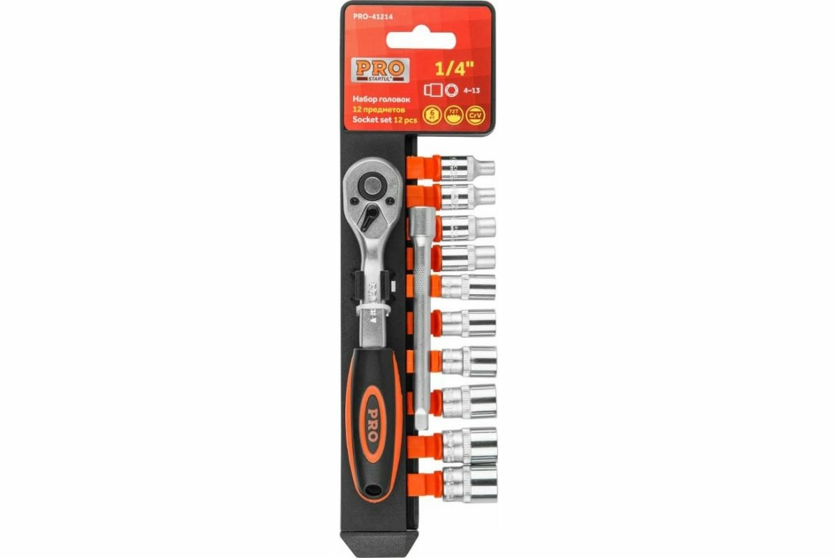 Набор головок Startul (PRO-41214), 1/4, 4-13 мм, 12 предметов, пластиковый подвес, 6 граней