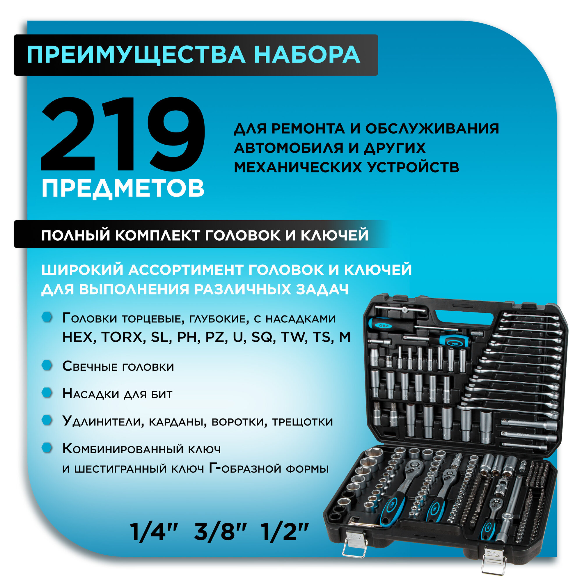 Набор инструментов 1/2" 1/4" 3/8" 6 граней 219 предметов PRO STARTUL Le Mans (PRO-219L)