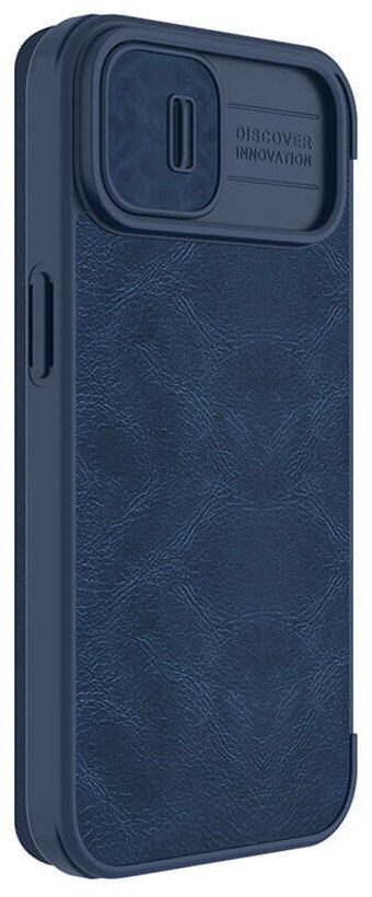 Кожаный чехол-книжка Nillkin Leather Qin Pro c защитой камеры для iPhone 14 темно-синий интересное: