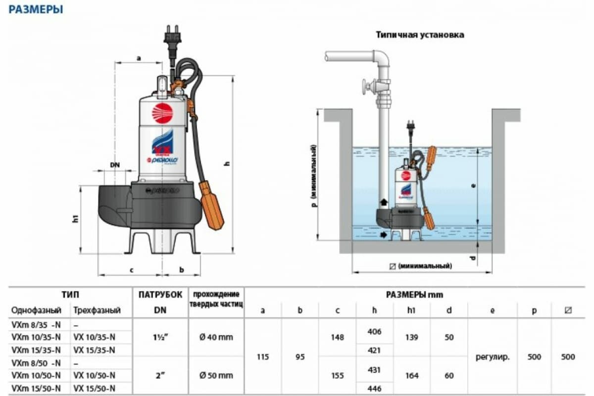 Pedrollo Насос дренажный VXm 15/50-N для грязной воды 48SGV91E0A1U интересное: