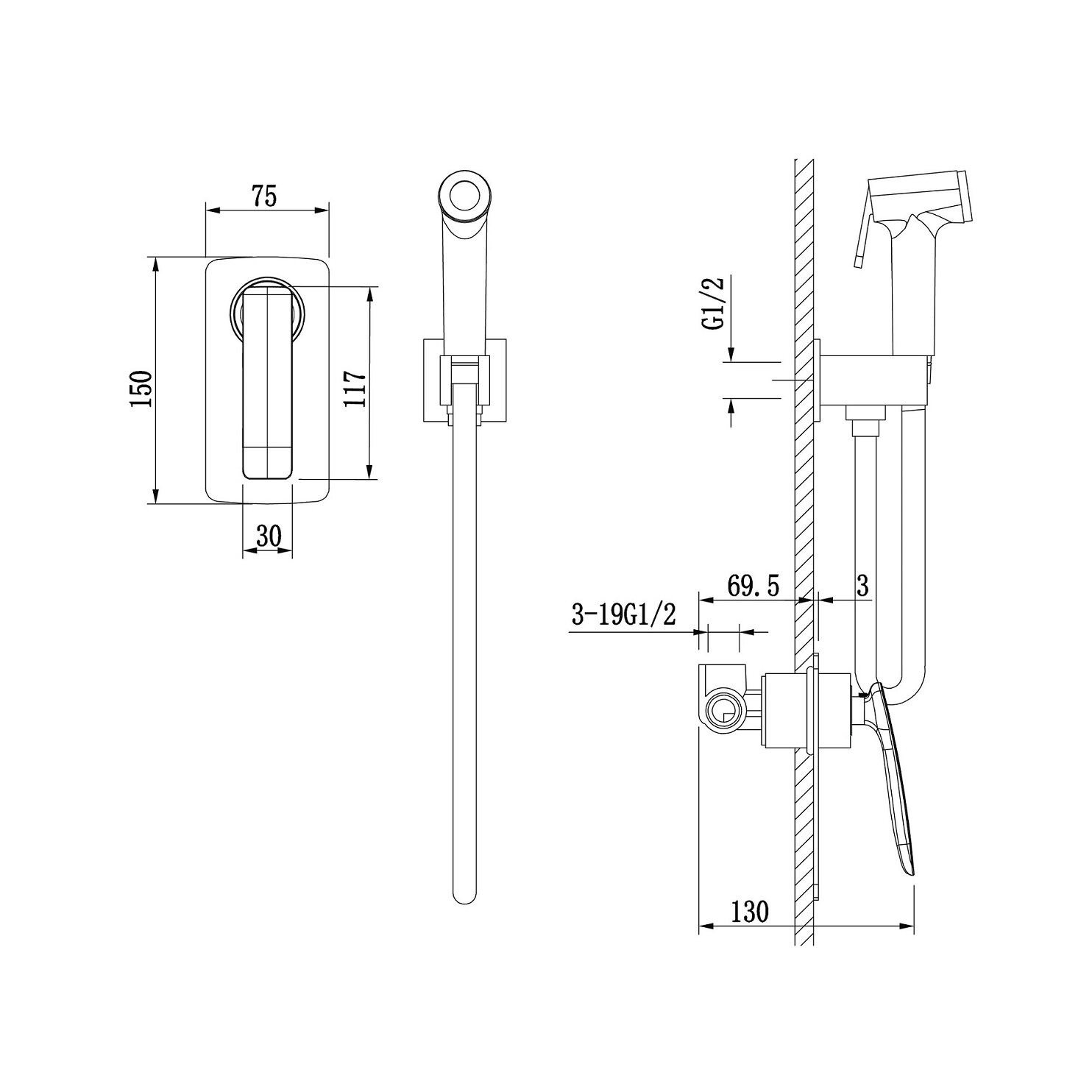 Гигиенический душ Timo Helmi 4089/03SM со смесителем. С внутренней частью