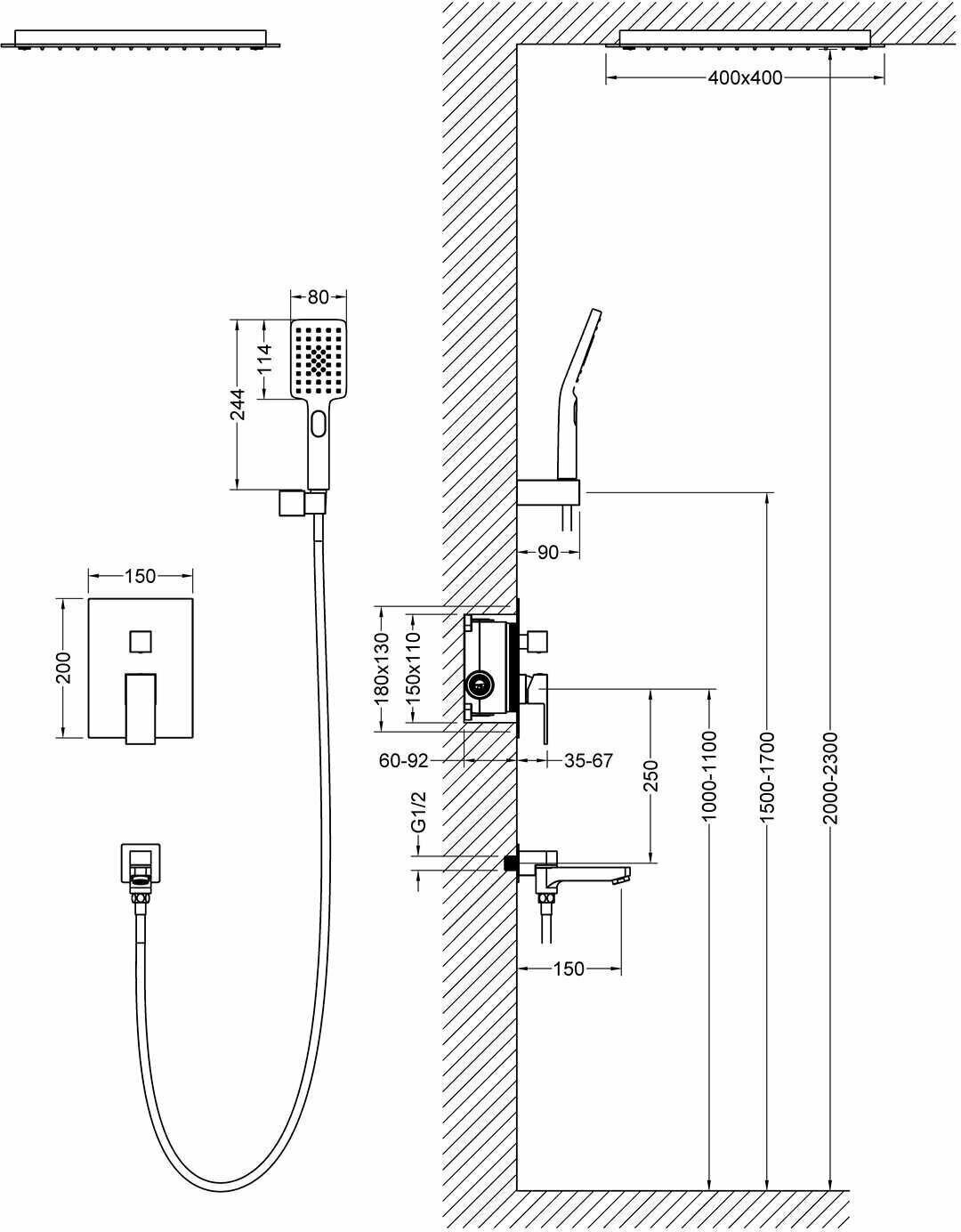 | Форма бокового душа | прямоугольная |