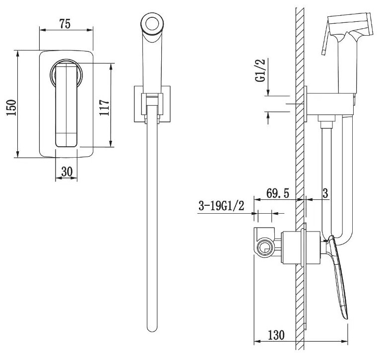 | Комплектация | Смеситель / шланг для душа / гигиеническая лейка / внутренняя монтажная часть |
