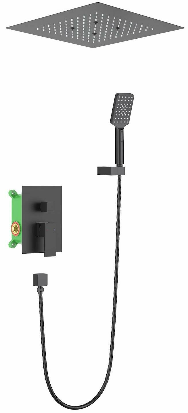| Комплектация | Смеситель с монтажной коробкой / скрытого монтажа - 1 шт. Ручная лейка 3-х режимная (пластик) - 1 шт. Держатель ручной лейки (пластик) - 1 шт. Декоративная накладка смесителя (латунная) - 1 шт. Ручка дивертора - 1 шт. Шланг душа 1,5 м (латунный) - 1 шт. Отвод из стены - 1 шт. Тропический душ / потолочный 400*400 мм (латунный) с установочной коробкой - 1 шт. Подвесные кронштейны (комплект) - 1 шт. Подводка к тропической лейке 1 м - 1 шт. Инструкция - 1 шт |