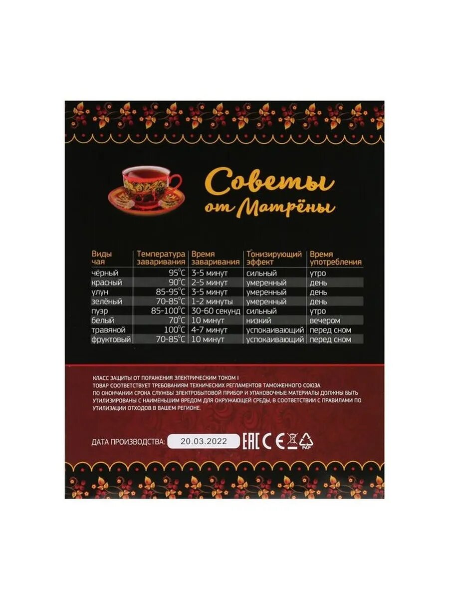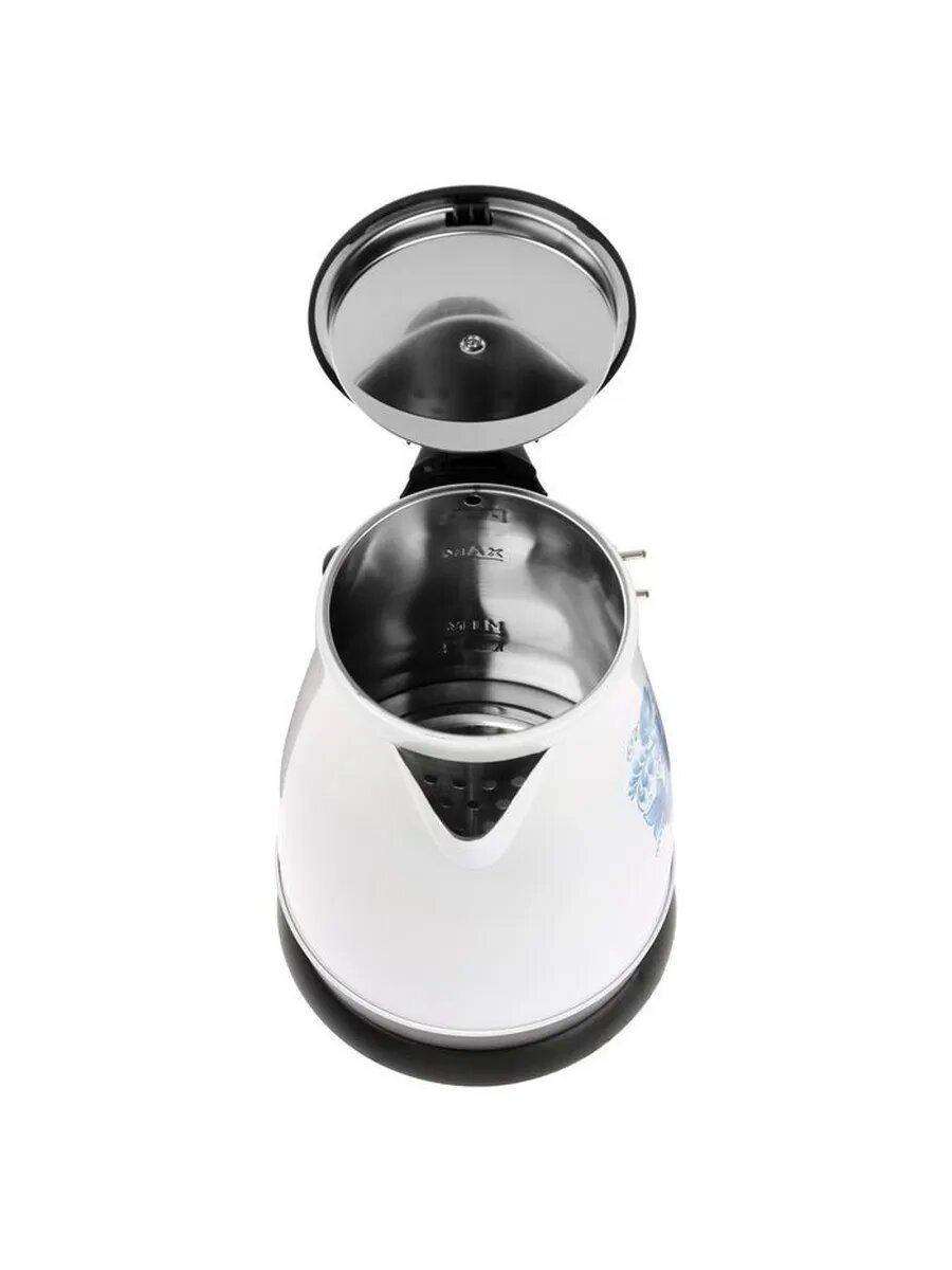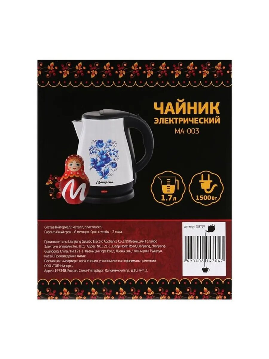 Чайник электрический"Матрёна" Ma-003, металл, 1.7 л, 1500 Вт, бело-чёрный с рисунком"Гжель" 936489 М интересное: