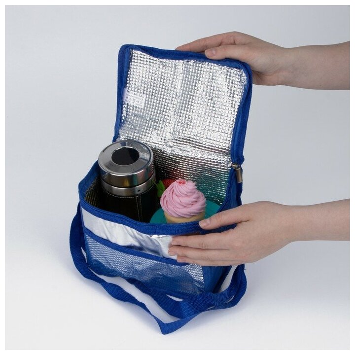 Термосумка на молнии, наружный карман, цвет синий интересное: