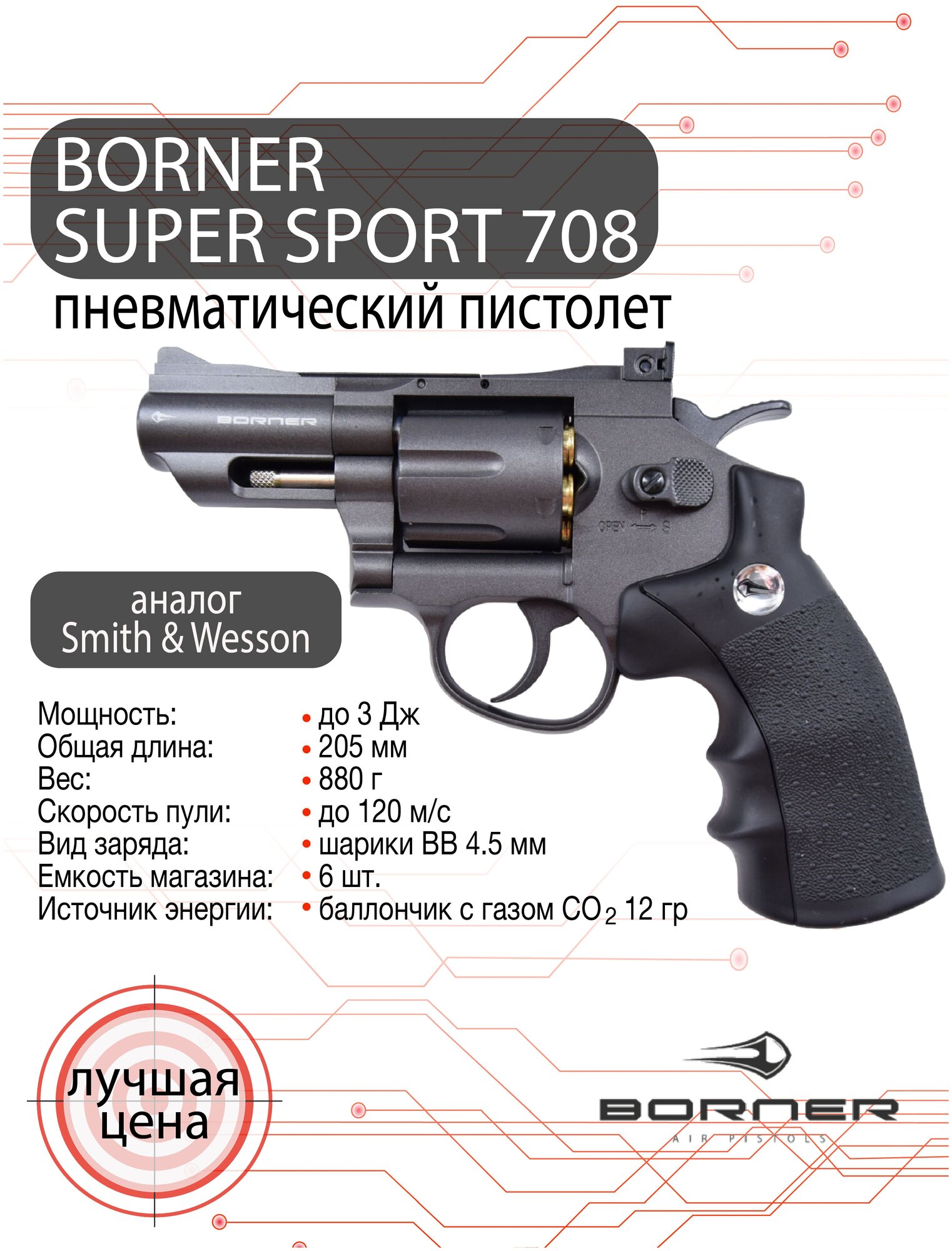 Пневматический револьвер Borner Super Sport 708 (Smith&Wesson), калибр 4,5 мм интересное: