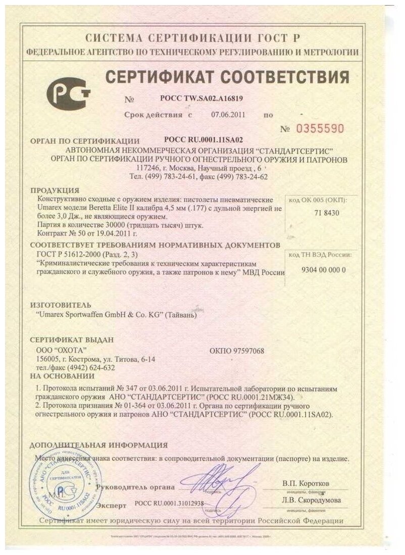 | Назначение | для спортивной стрельбы / для тренировки |