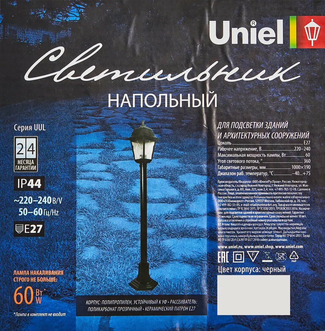 Uniel UUL-A01T 60W/E27 IP44 BLACK Светильник уличный, под лампу Е27. Архитектурный напольный. Корпус черный. TM Uniel
