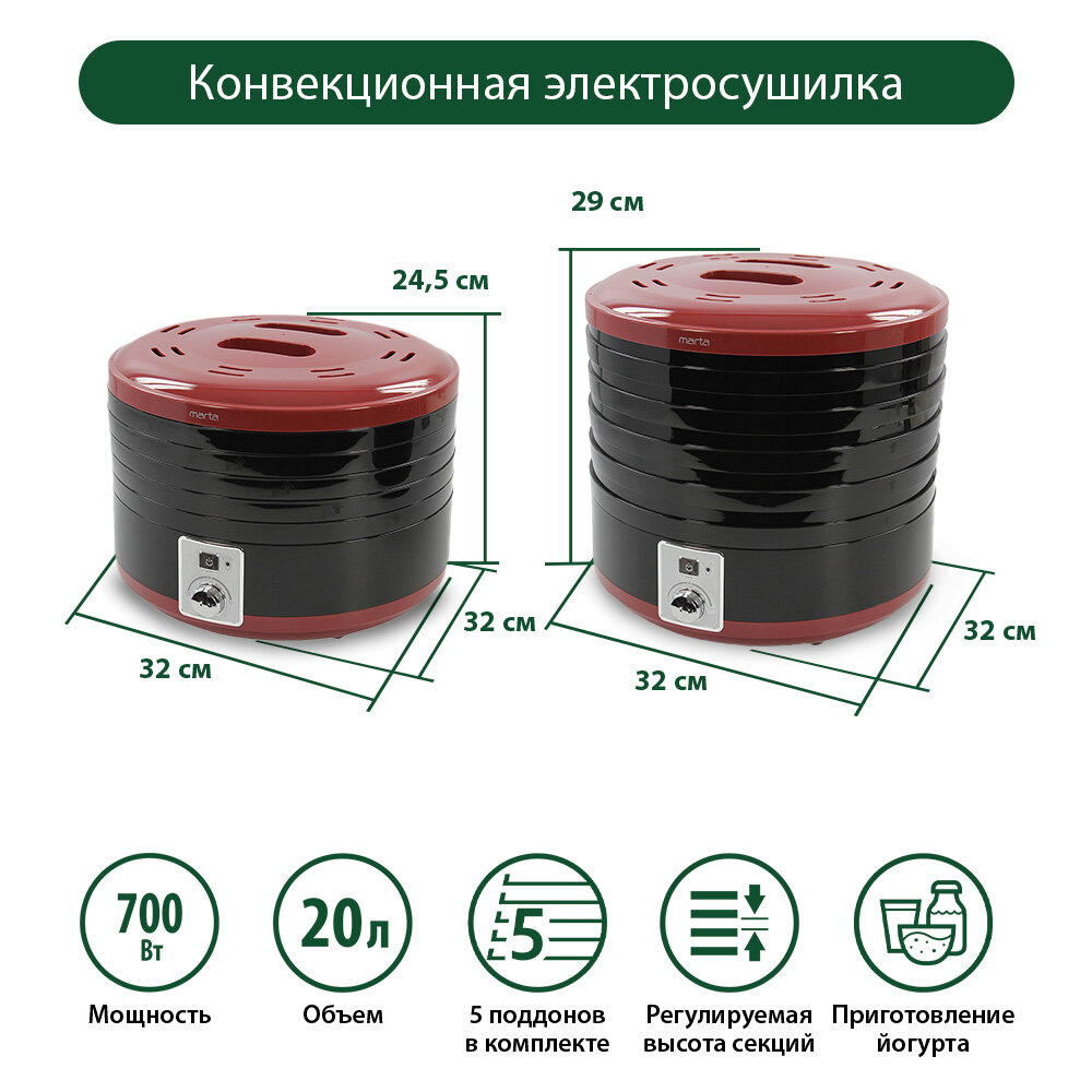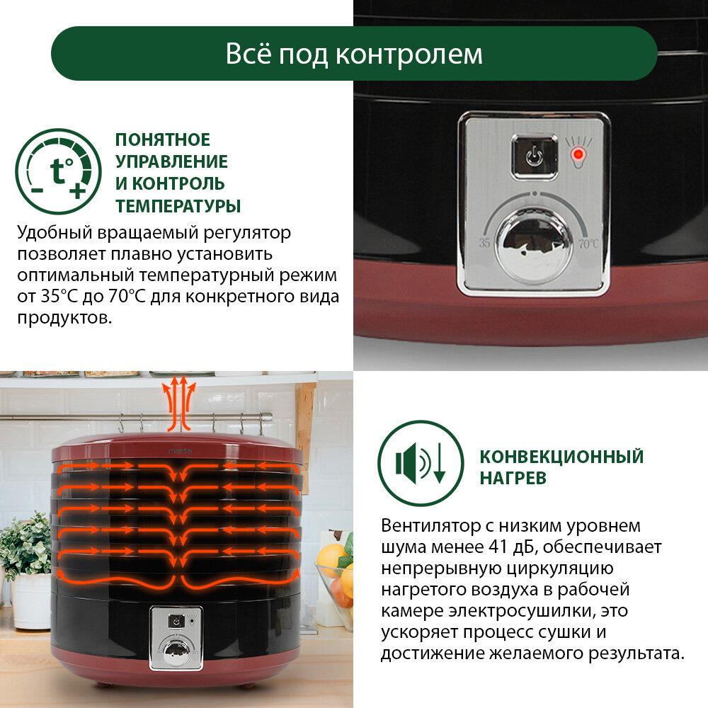 MARTA MT-1953 5 поддонов темный гранат сушилка д/фруктов,овощей интересное: