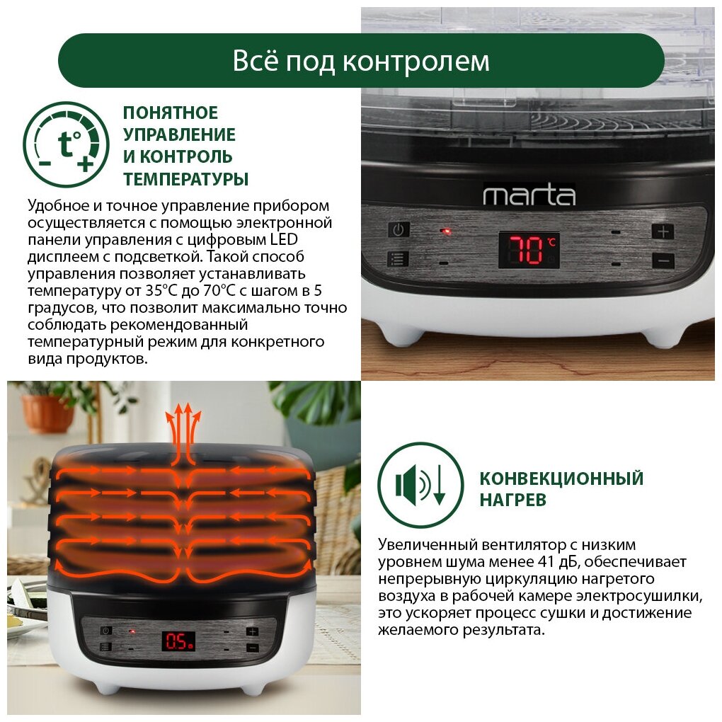 MARTA MFD-8204PS 6 поддонов 4 (3 разб)+2(пастила) темный обсидиан сушилка д/фруктов,овощей интересное: