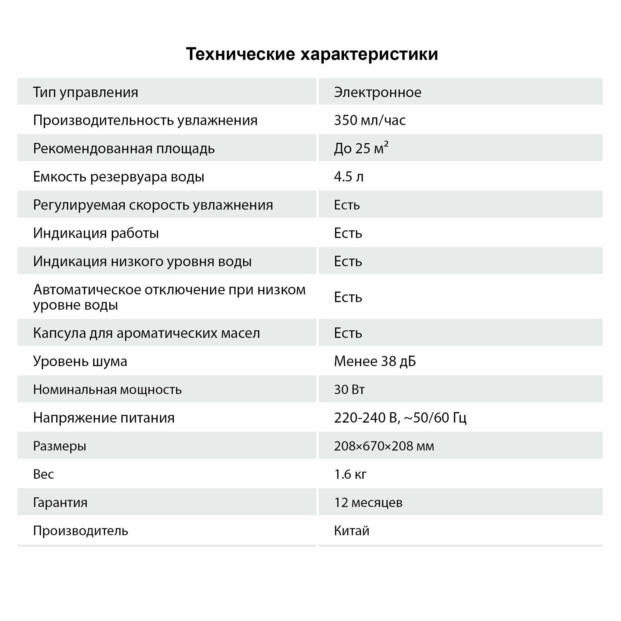 | Тип увлажнителя | ультразвуковой |