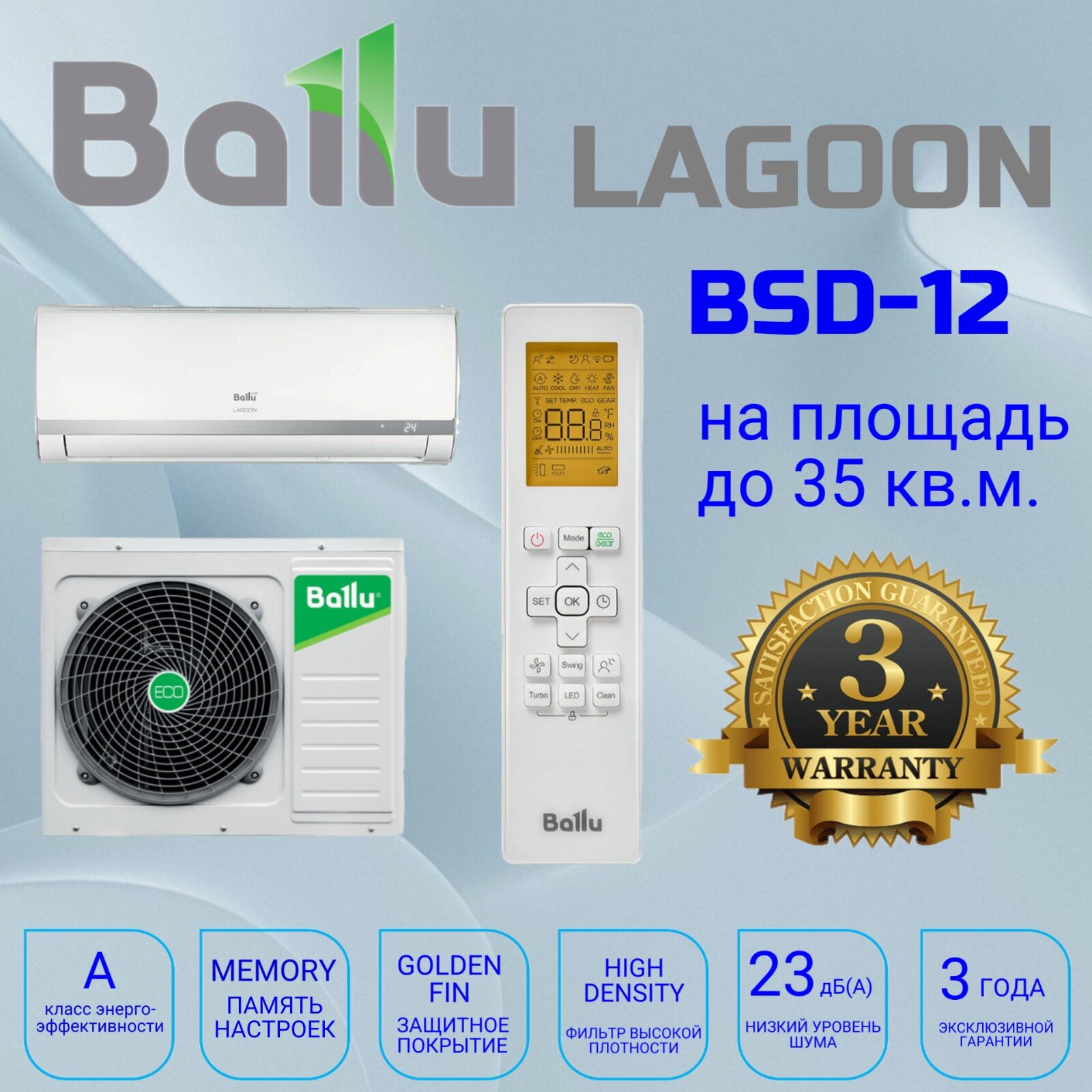 Сплит-система Ballu Lagoon BSD-12HN1_20Y, для помещения 32 кв. м.