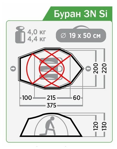 | Водостойкость тента/дна | 4000 / 10000 мм в.ст. |