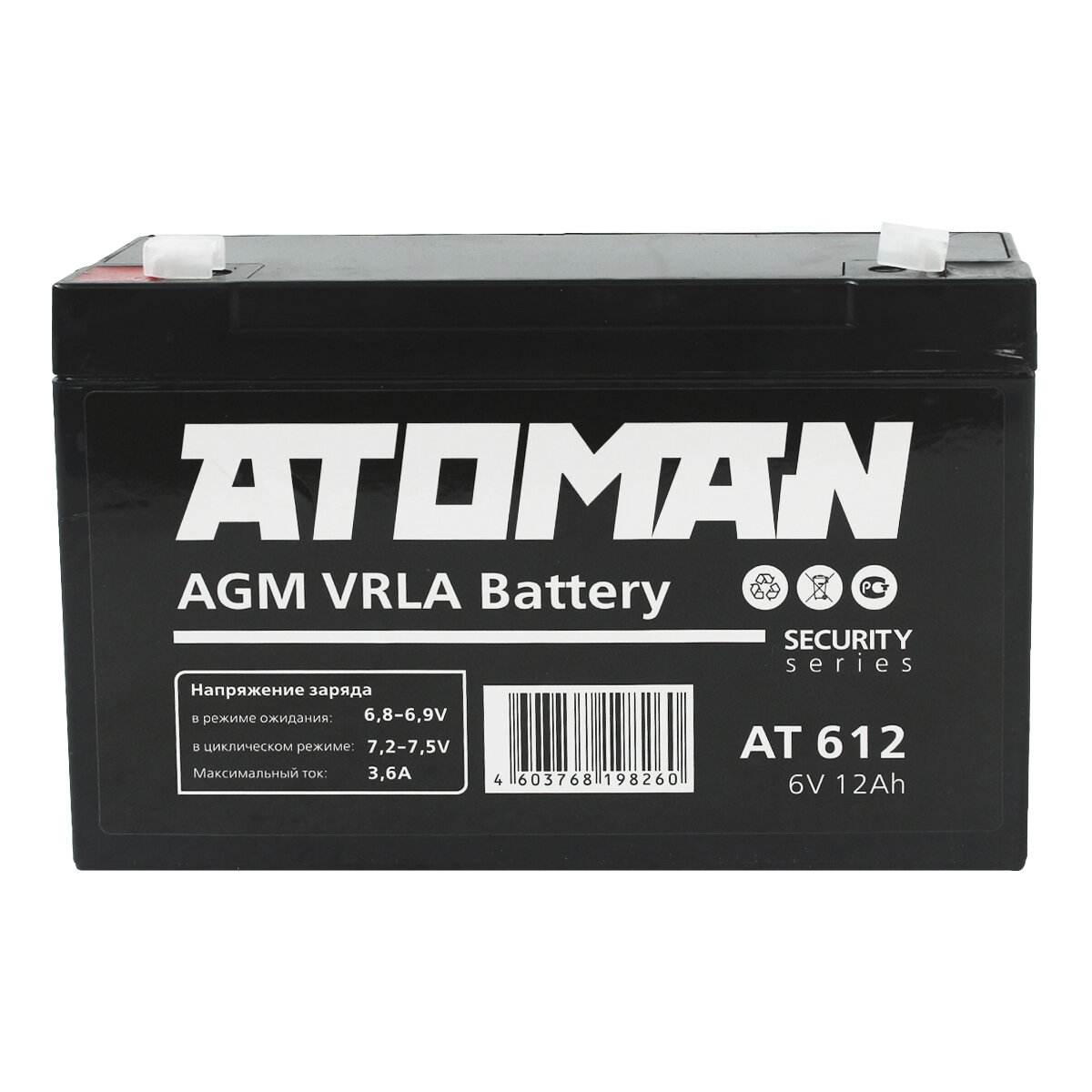Аккумулятор ATOMAN 6В 12Ач (AT612) охр.-пож.сист./сист.контр.упр.доступ. интересное: