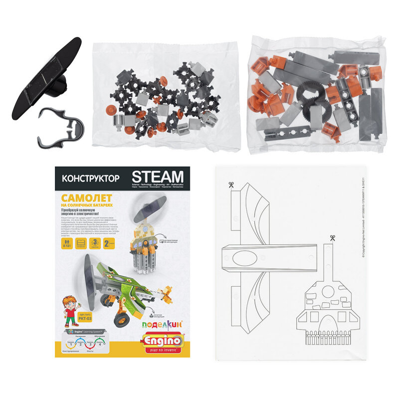 Поделкин & Engino PKT-03 Конструктор пластиковый Самолет на солнечных батареях 63 элемент.