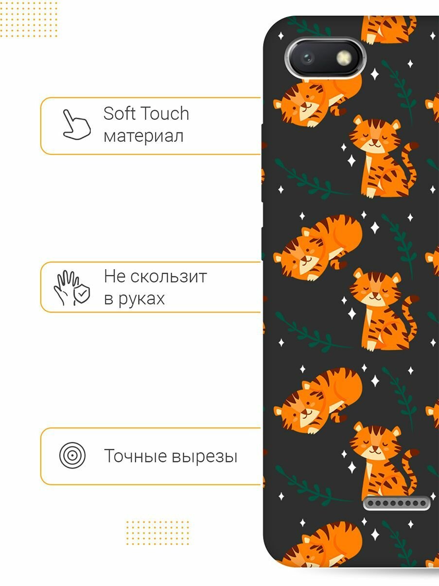 Матовый Soft Touch силиконовый чехол на Xiaomi Redmi 6A / Сяоми Редми 6А с 3D принтом "Tigers" черный интересное: