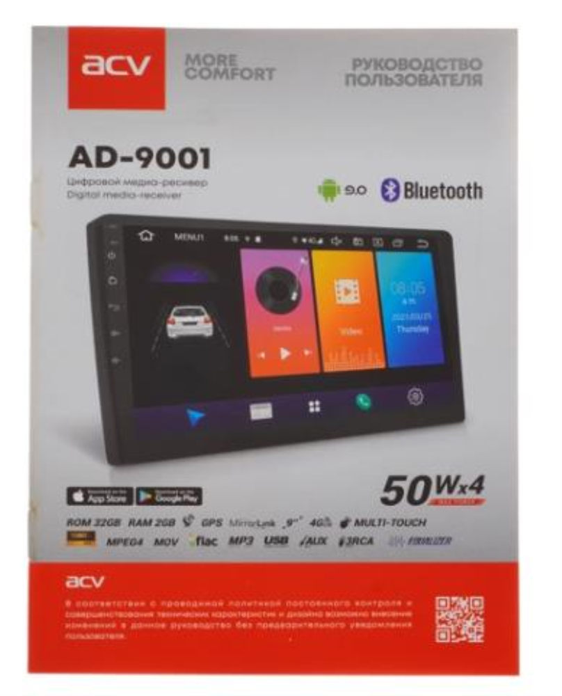 Ресивер-Мультимедиа ACV AD-9001 9" / Android 9 / 2+32Гб / BT / GPS / 4G