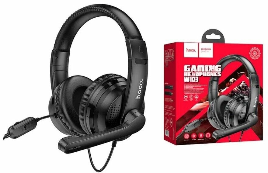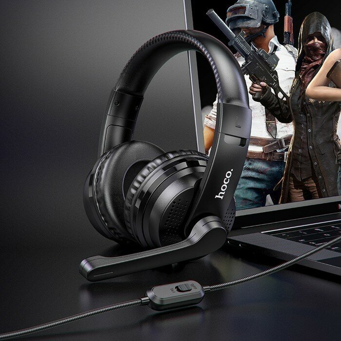 Наушники Hoco W103, игровые, полноразмерные, микрофон, 3.5 мм, 1.2 м, черные
