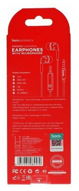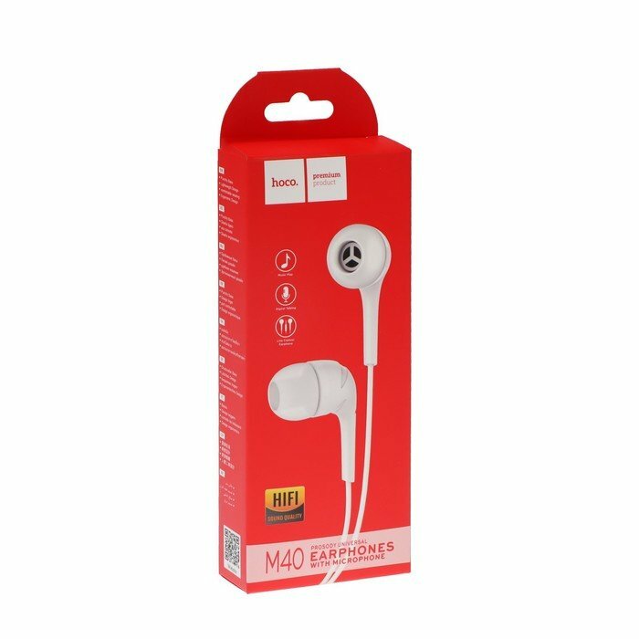 Наушники Hoco M40, проводные, вакуумные, микрофон, Jack 3.5 мм, 1.2 м, белые интересное: