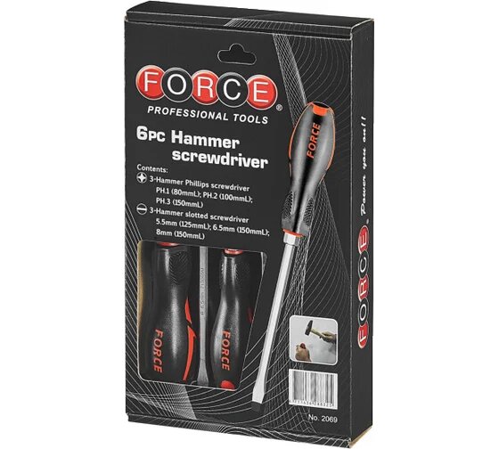 Набор ударных отверток 6пр FORCE 2069 | цена за 1 шт