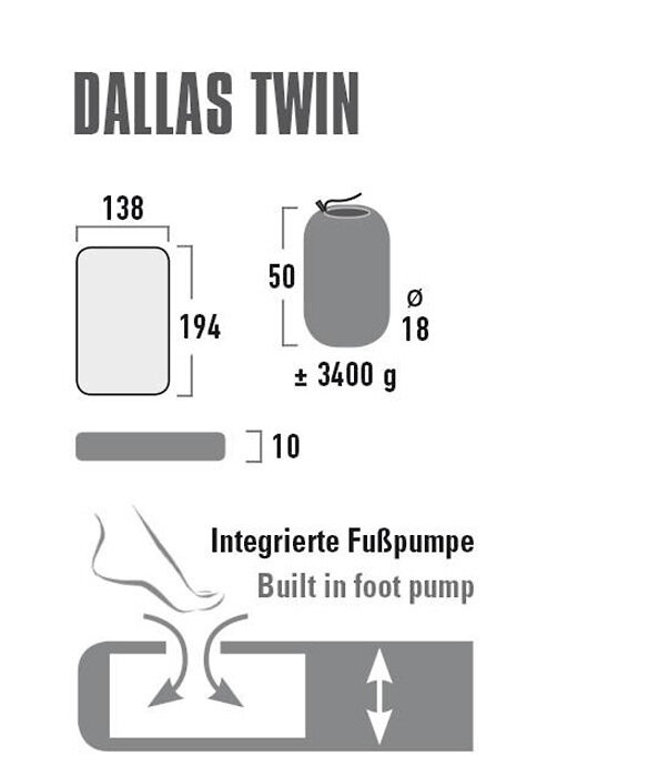 Надувной коврик High Peak Dallas Twin со встроенным ножным насосом, 194 х 138 х 10 см