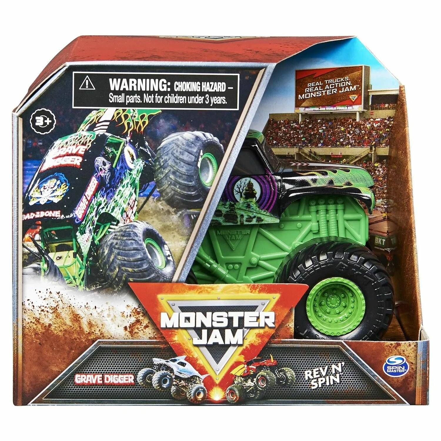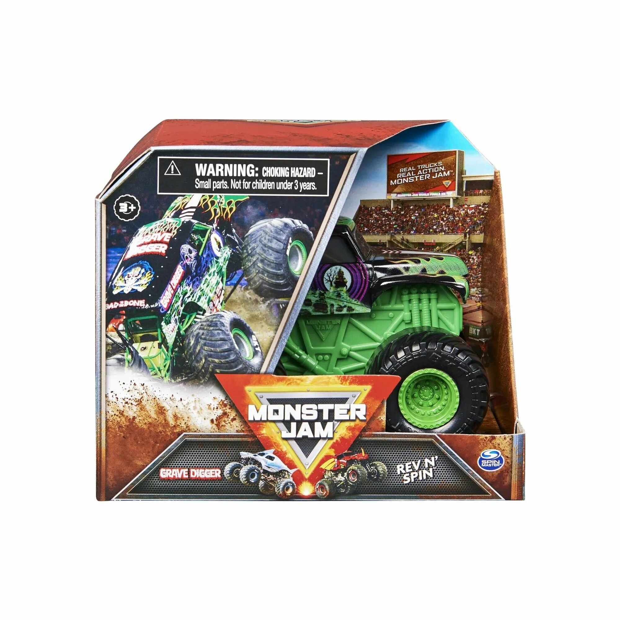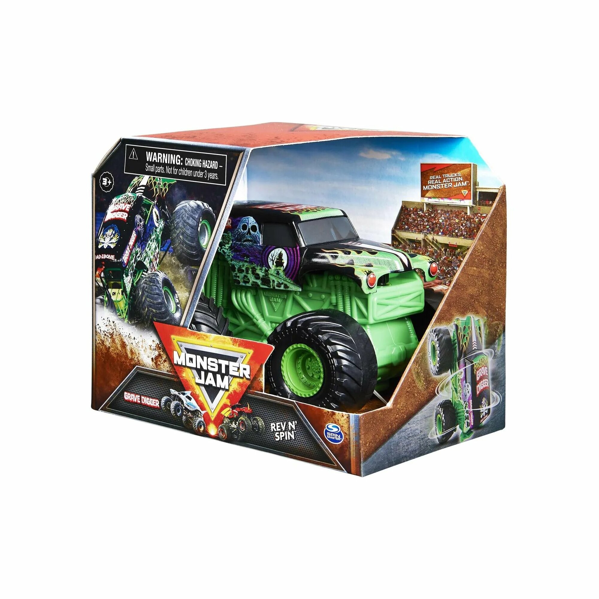 Монстр-трак Monster Jam Rev N' Spin Grave Digger 6063896 1:43, зеленый интересное: