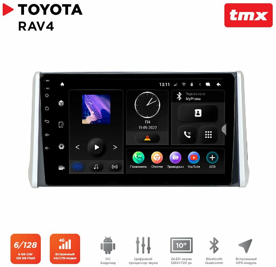 Автомагнитола Toyota RAV4 (Incar TMX-2204-6) Android 10, QLED 1280x720, 8 ядер, BT 5.0, 4G, Wi-Fi, DSP, память 6Gb+128Gb, 10 дюймов интересное: