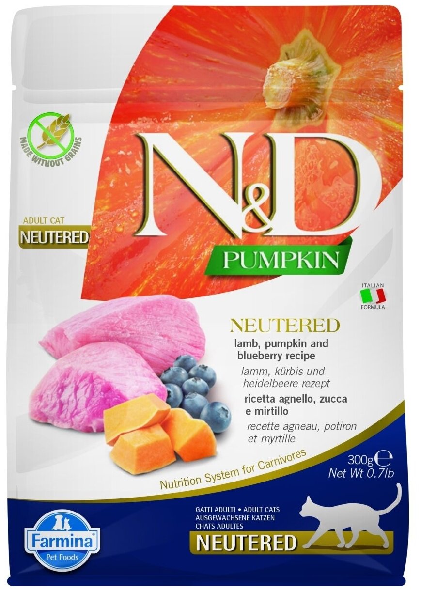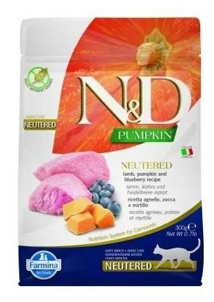 Купить Фармина N&D PUMPKIN LINE для кошек PUMPKIN LAMB & BLUEBERRY NEUTERED Adult, 0,3 кг
