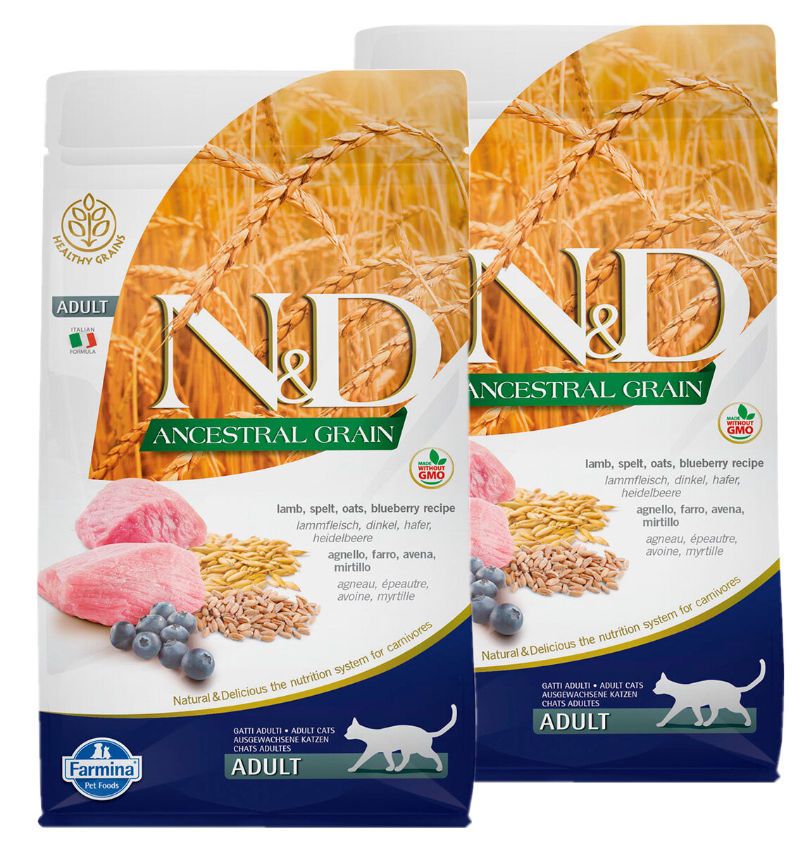 Купить FARMINA CAT N&D ANCESTRAL GRAIN LAMB & BLUEBERRY низкозерновой для взрослых кошек с ягненком и черникой (5 + 5 кг)