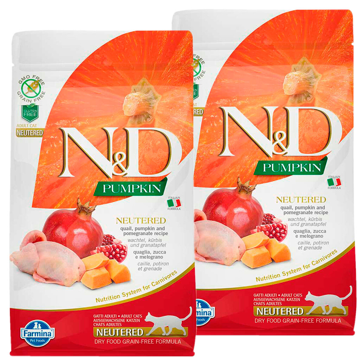Купить FARMINA CAT N&D GRAIN FREE PUMPKIN NEUTERED QUAIL беззерновой для взрослых кастрированных котов и стерилизованных кошек с перепелом, тыквой и гранатом (0,3 + 0,3 кг)