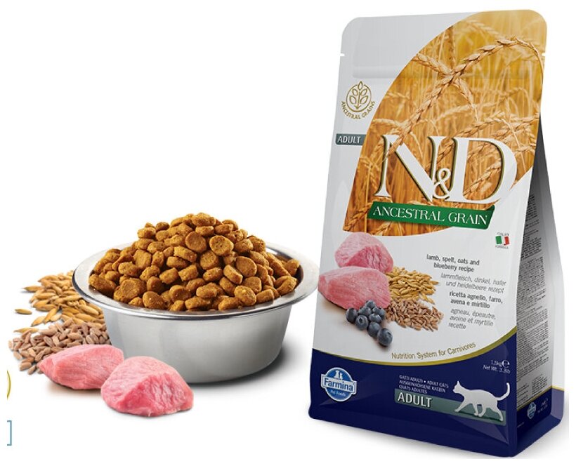 Сухой корм Farmina N&D Ancestral Grain для взрослых кошек, ягненок и черника, 0,3 кг интересное: