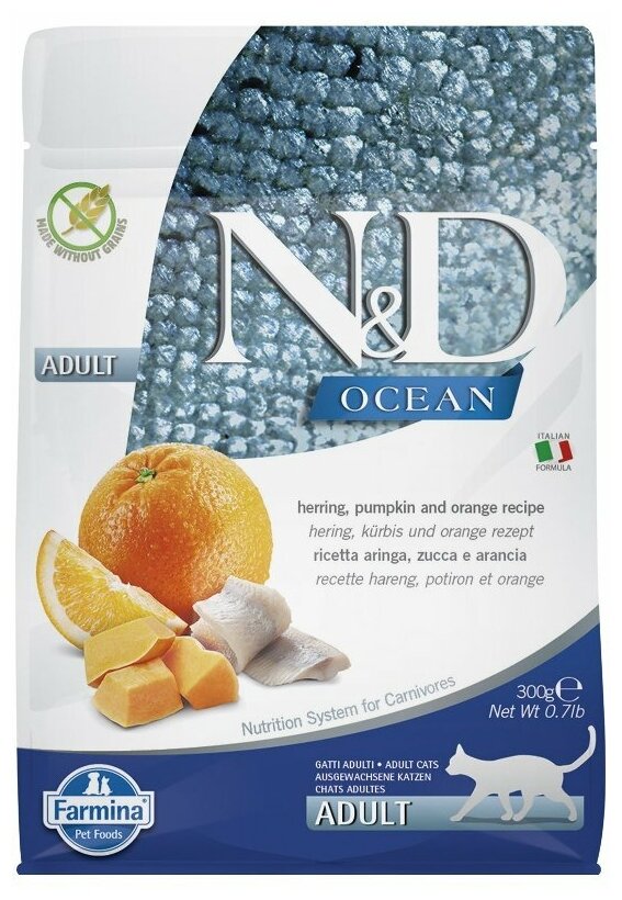 Сухой корм для кошек Farmina N&D Ocean, беззерновой, с сельдью, с тыквой, с апельсином, 0,3 кг интересное: