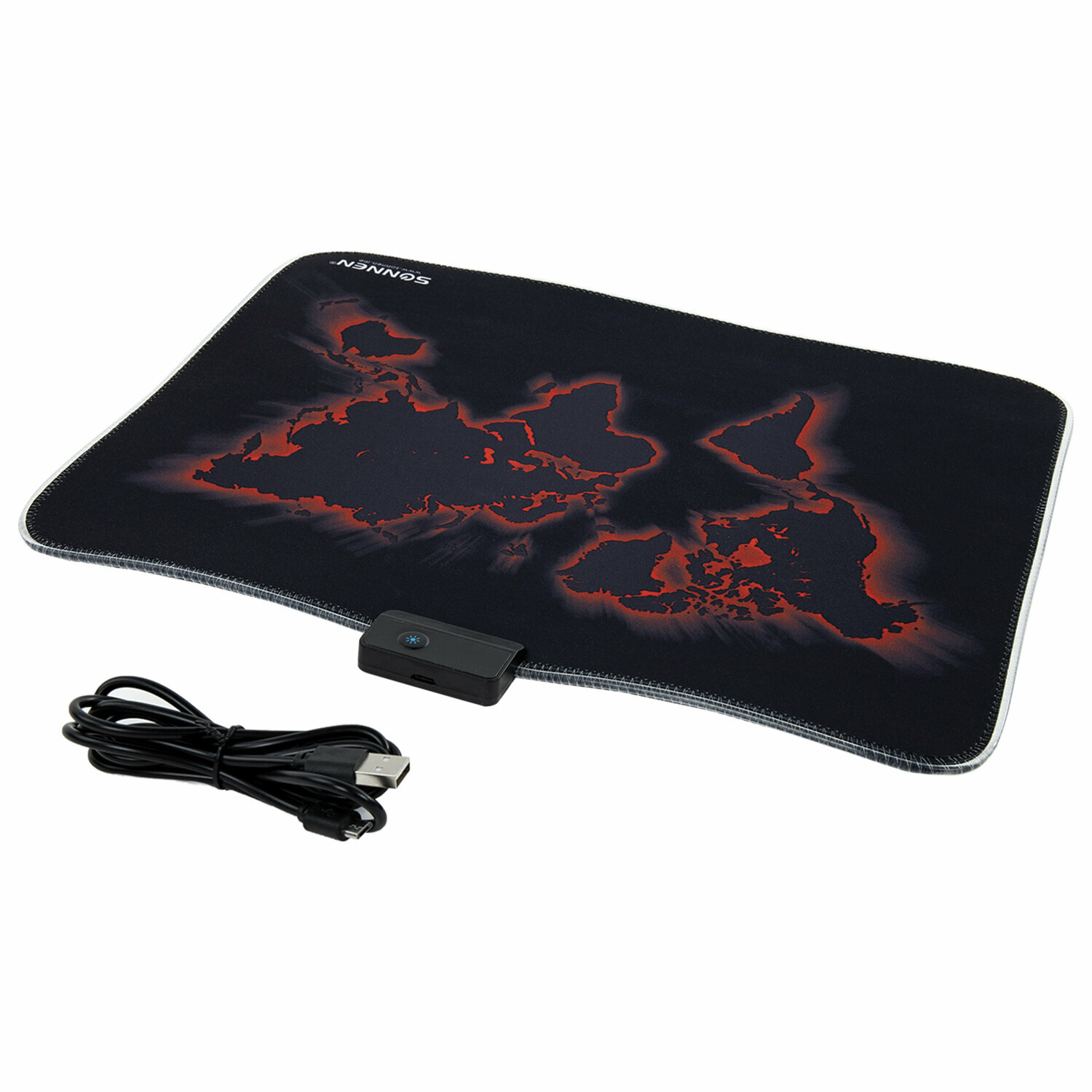 Коврик для мыши игровой Sonnen с подсветкой "Lighting", резина, ткань, 350х270х4 мм, черный 513316