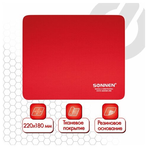 Коврик для мыши SONNEN "RED", резина + ткань, 220х180х3 мм, 513306 (цена за 1 ед.товара)