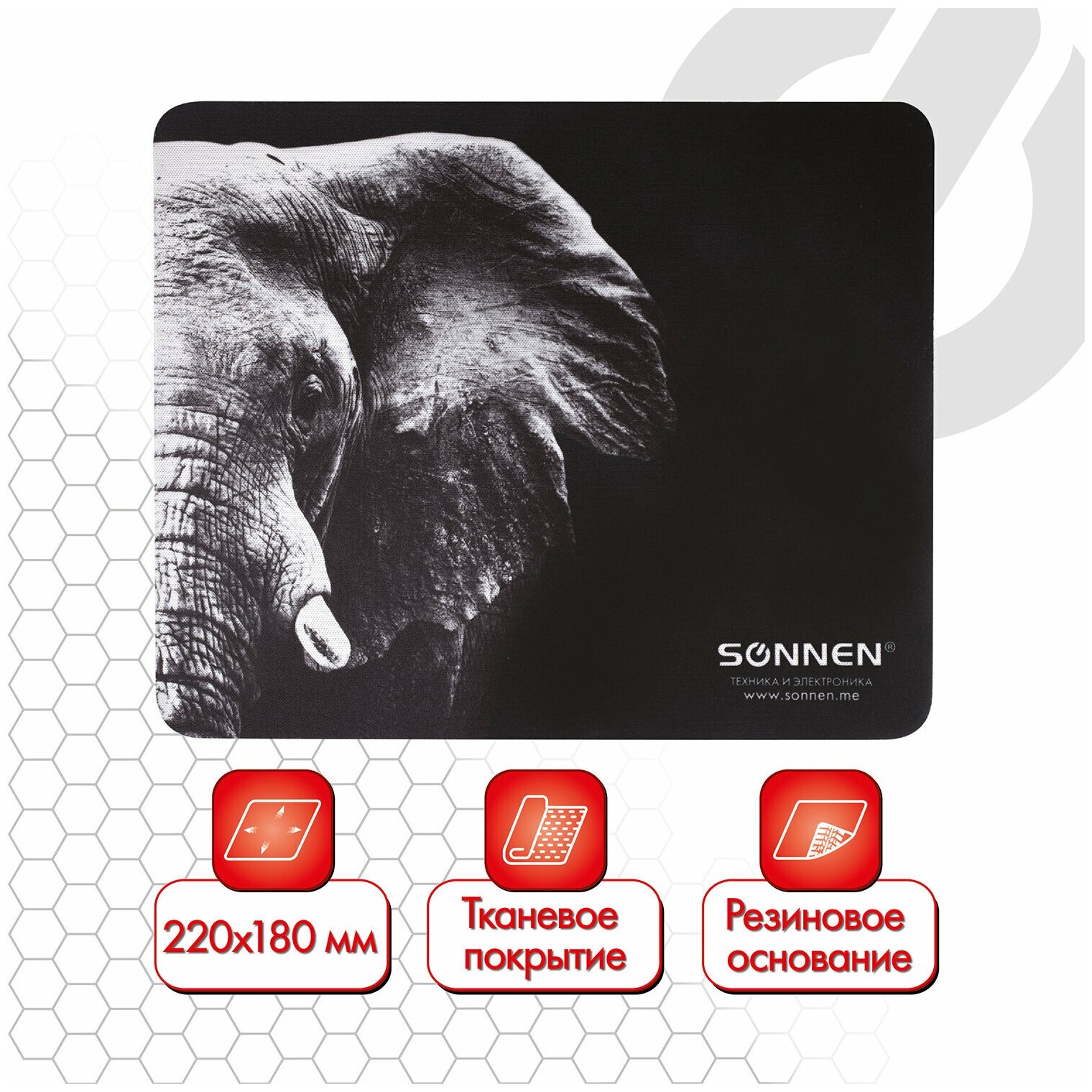 Коврик для мыши SONNEN "ELEPHANT", резина + ткань, 220х180х3 мм, 513312 (цена за 5 шт) интересное: