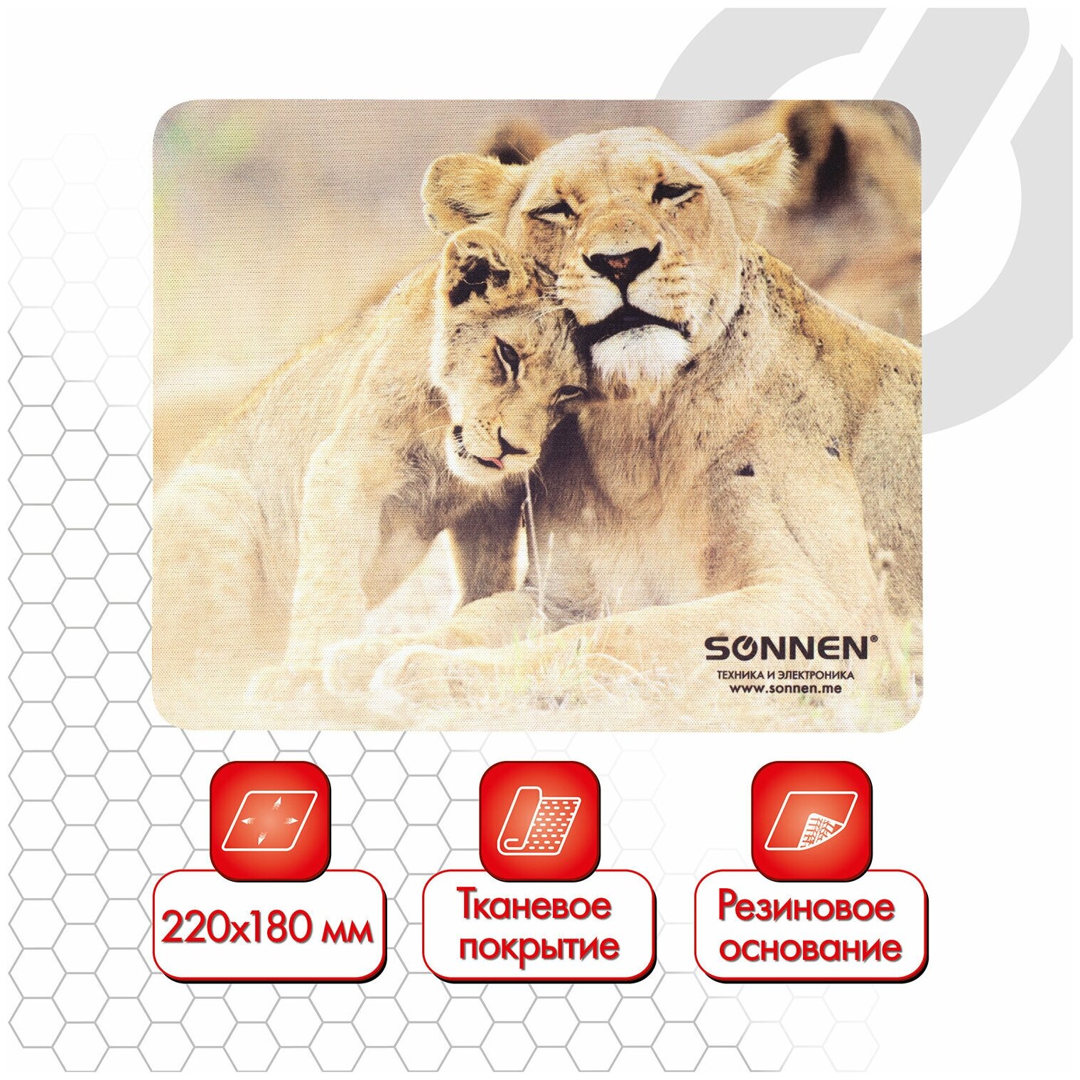 Коврик для мыши SONNEN "LIONS", резина + ткань, 220х180х3 мм, 513310 (цена за 5 шт) интересное: