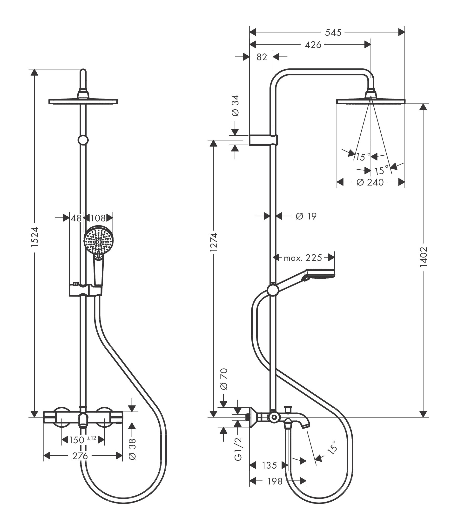 Термостат Hansgrohe PuraVida 15775000 для ванны с душем